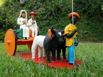 Casal de noivos no carro de boi - Altura: 26 cm - Base: 17 x 44 cm - Ano: 1990